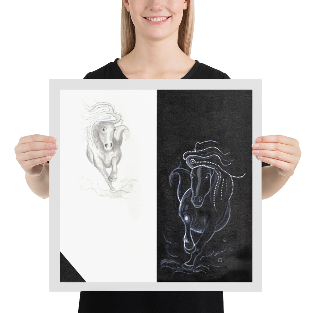 “This painting represents the two main teams that formed to be Tynesides main competitors. In the first painting the two seahorses facing away from each other are now racing. Notice they have flippers instead of back legs to represent the seahorses on the clubs badge.”